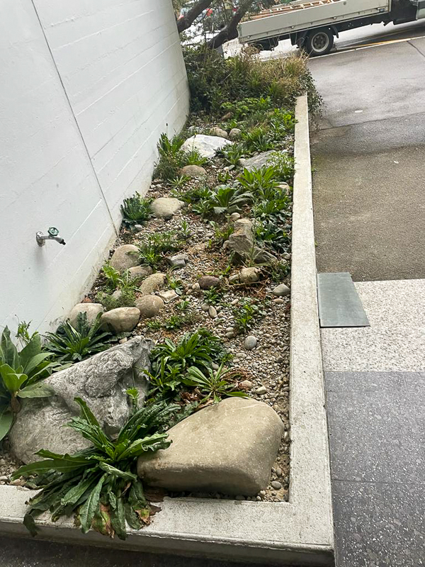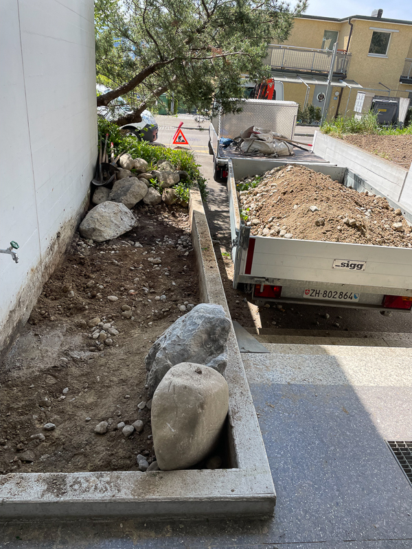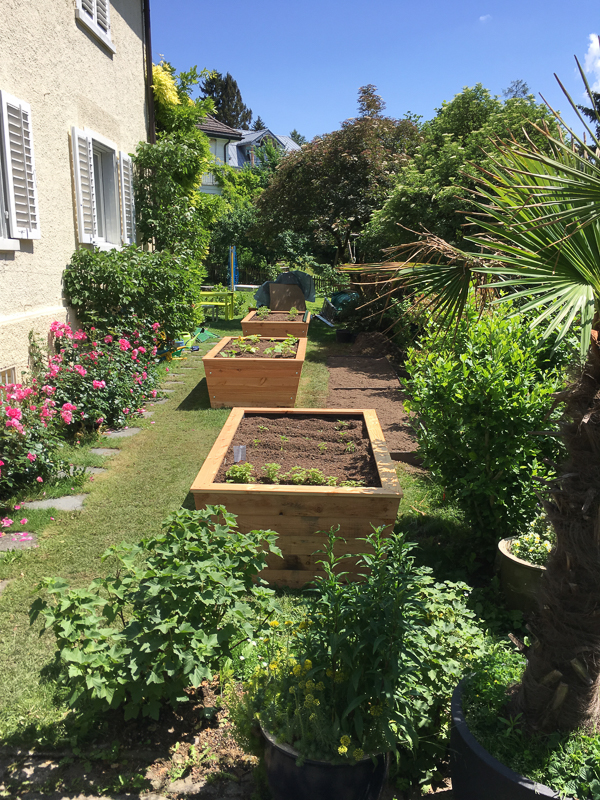 Tröge zwei Monate nach Bepflanzung