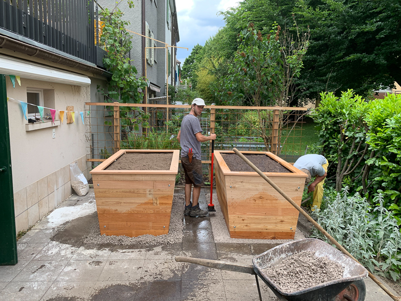 Hochbeete und Rankgerüst