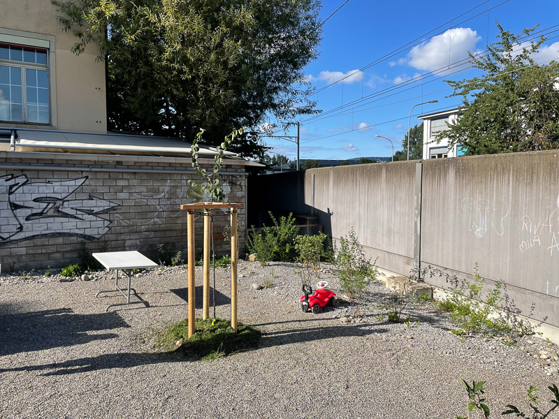 Kiesplatz mit Quittenbaum