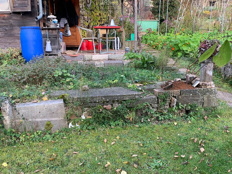 Sitzplatz und Mauern aus Sand- und Kalkstein